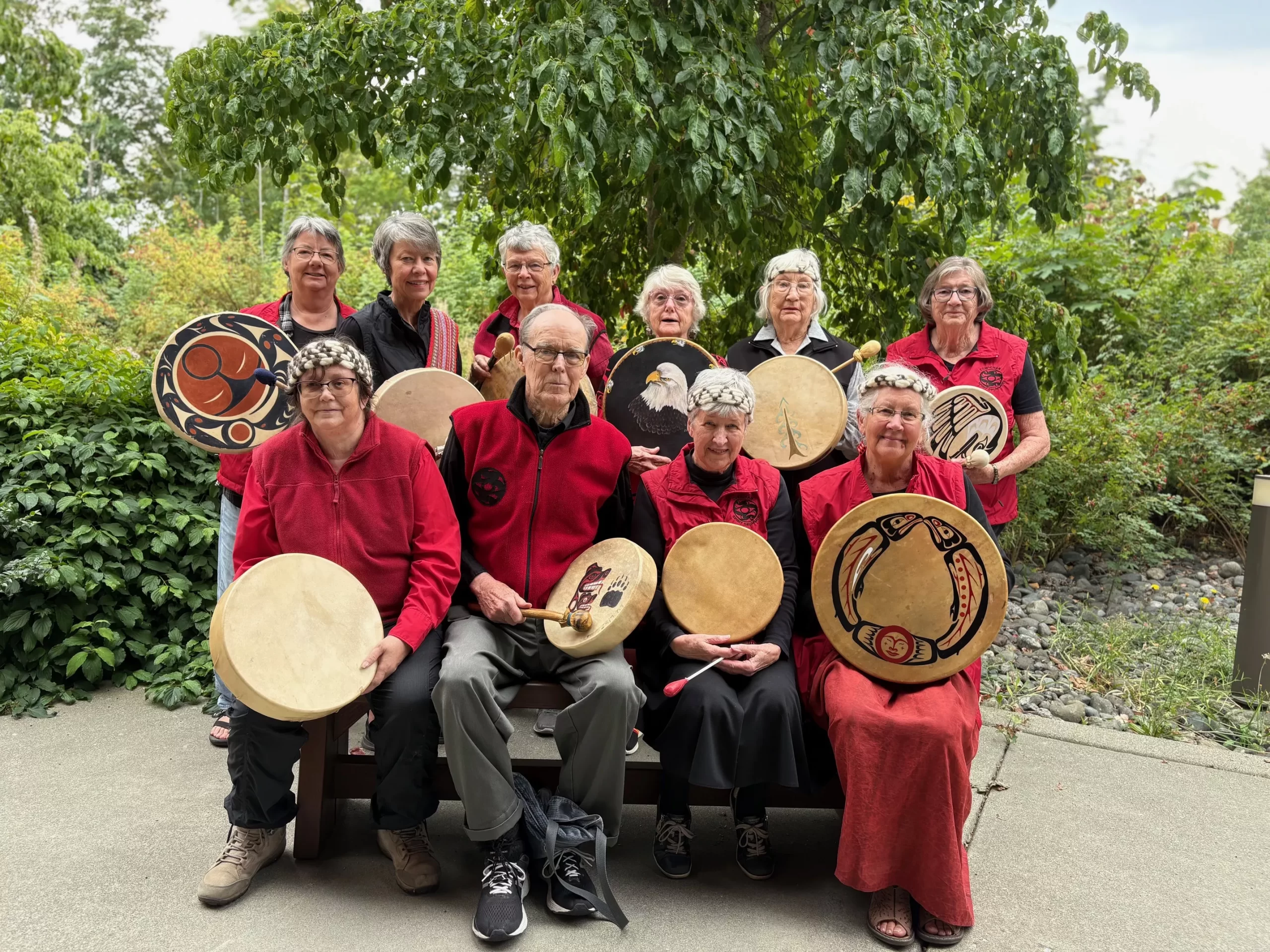 Cowichan Spirit Drummers is an intercultural group from the Cowichan Valley who gather to sing with Indigenous hand drums, guided by Cowichan protocols. Formed in 2008 to welcome visitors to the North American Indigenous Games, the group celebrates Nutsa'maat Shqwalawun — coming together with one heart and mind. They sing Cowichan songs gifted to them and others within tradition, meeting regularly in circle and performing at public events by invitation. Their guiding principle: Everyone is welcome.