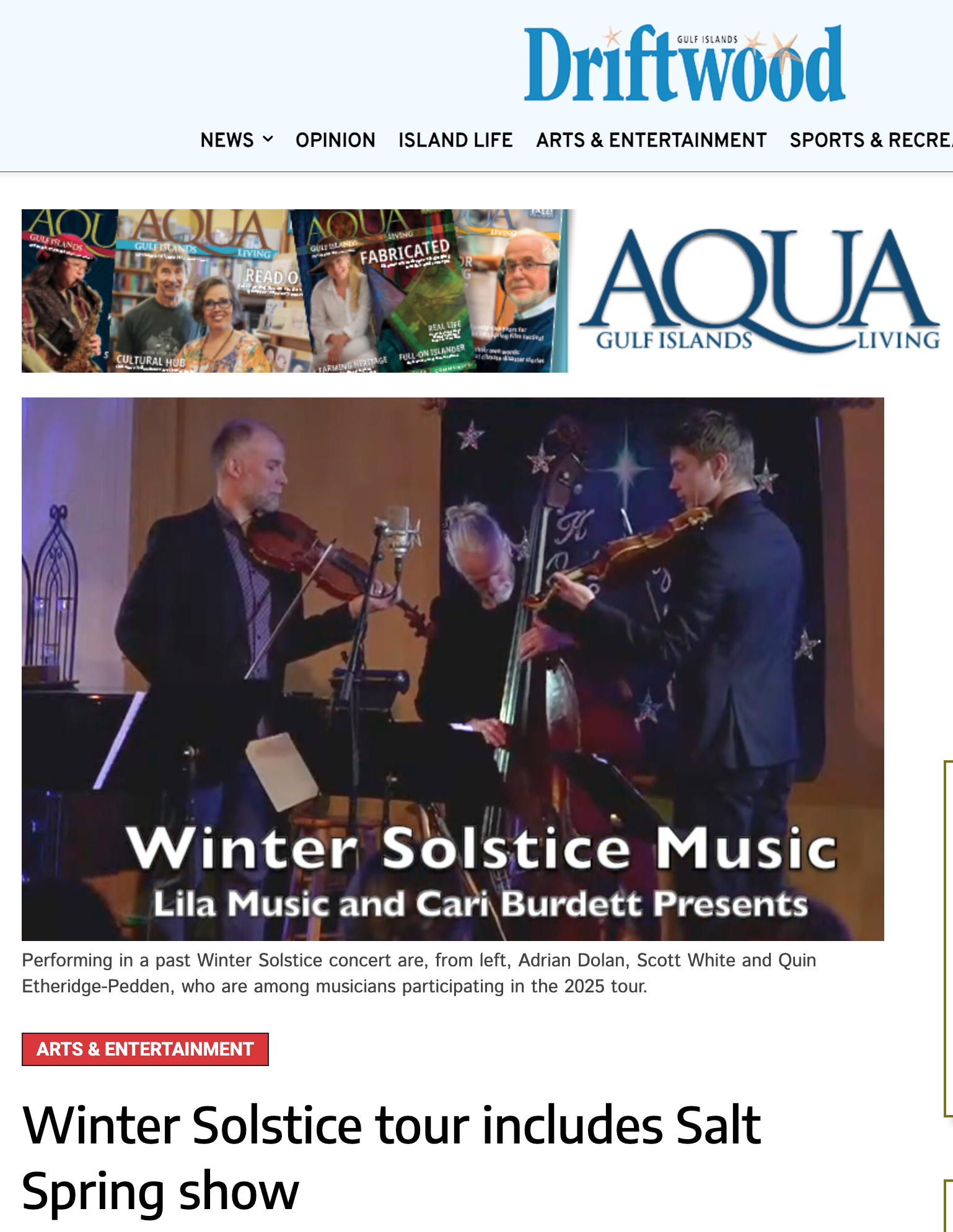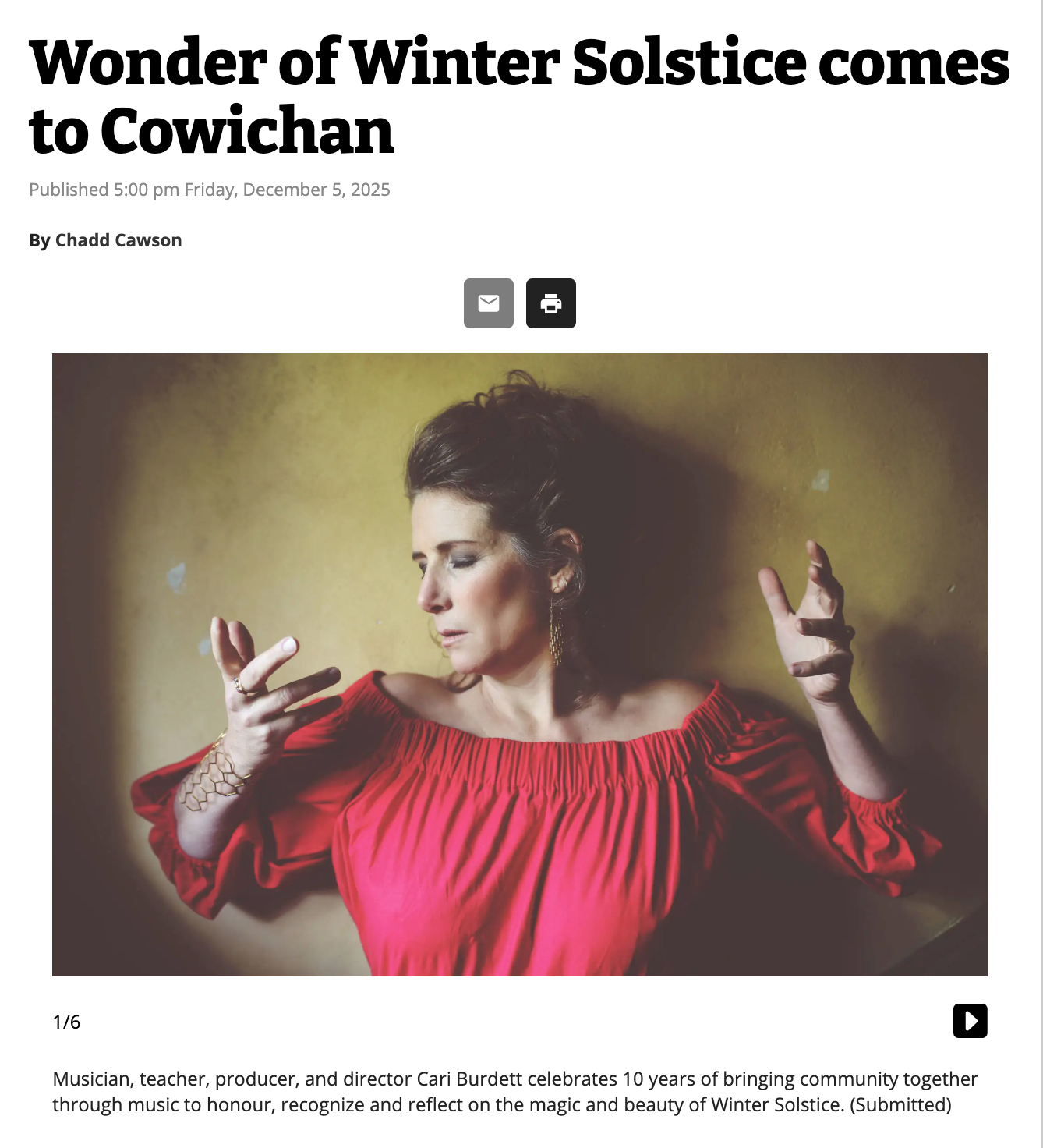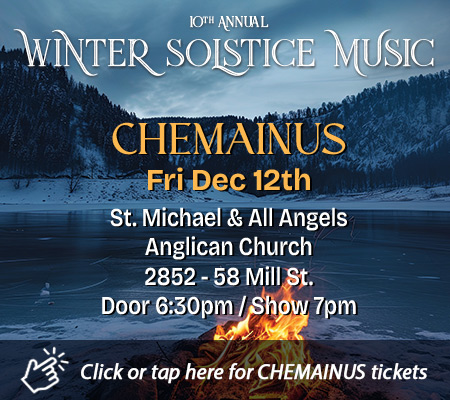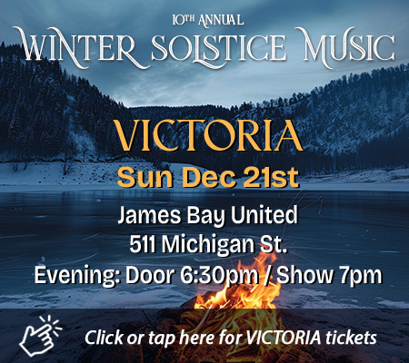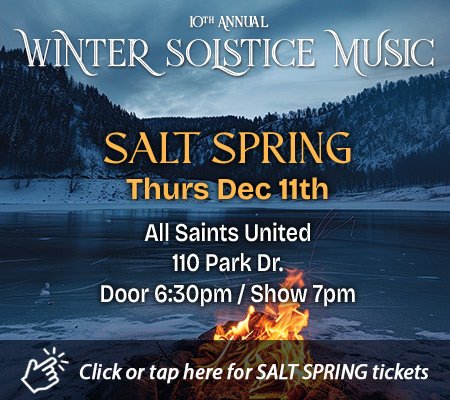 This December, acclaimed vocalist and artistic director Cari Burdett brings her beloved Winter Solstice Concert back to the Cowichan Valley and Vancouver Island communities. Featuring some of BC’s finest musicians – including Adrian Dolan, Quin Etheridge Pedden, and Scott White – and the radiant voices of Cari Burdett and Maeve Iredale, this annual concert series weaves together soulful harmonies, evocative strings, and songs that honor the season’s stillness and renewal. More than a concert, it’s an immersive, heart-opening experience – where audience voices join in call-and-response, shared wishes, and reflection.
